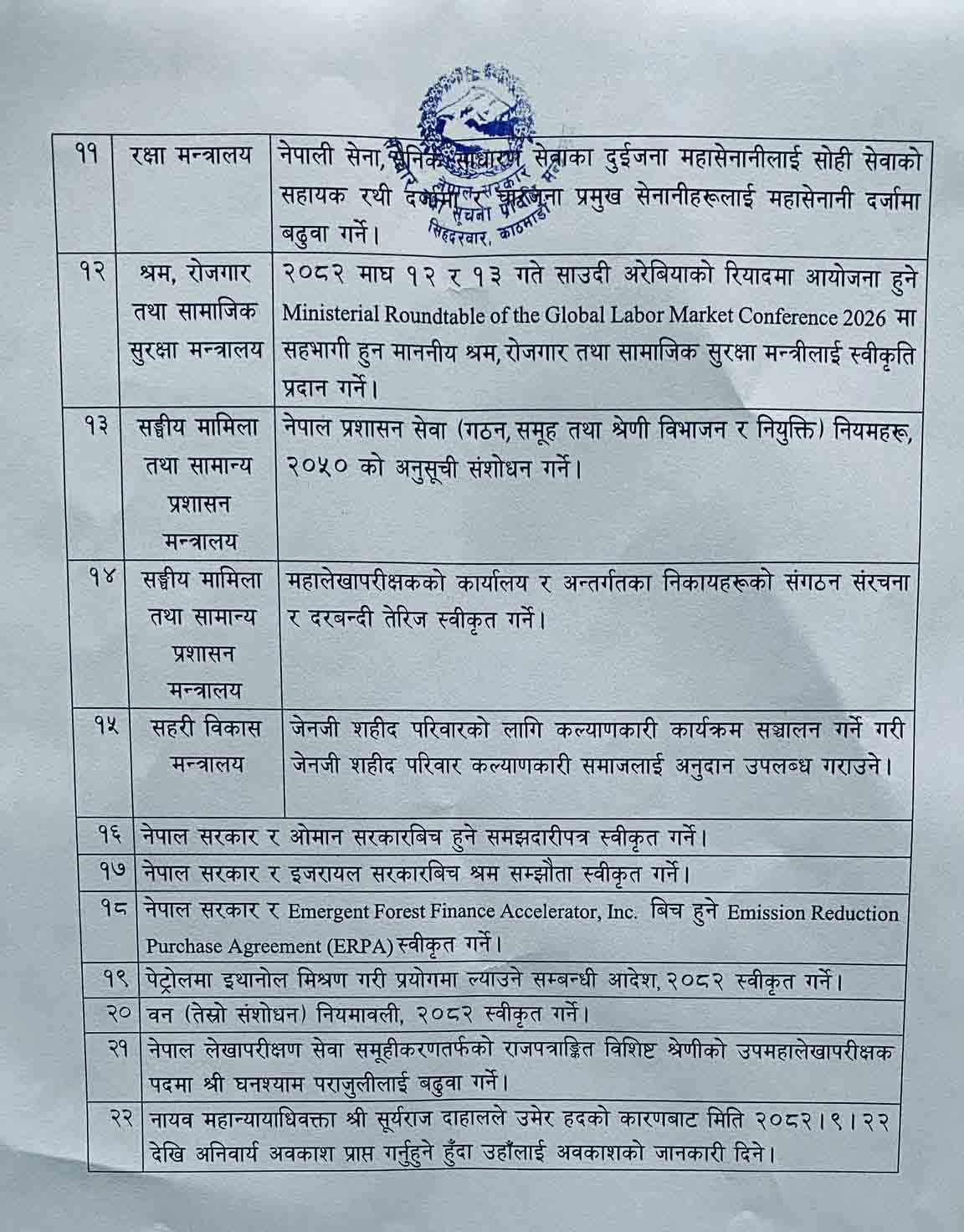 यस्ता छन् मन्त्रिपरिषद्का निर्णयः