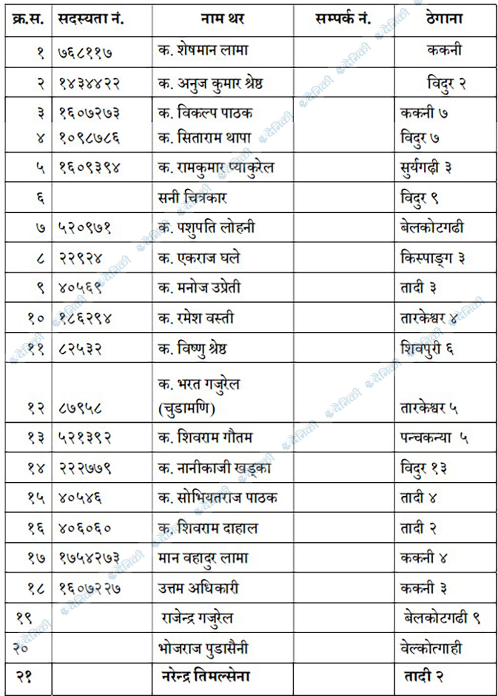 साथै एकराज घले, मनोज उप्रेती, रमेश वस्ती, विष्णु श्रेष्ठ, भरत गजुरेल, शिवराम गौतम, नानीकाजी खड्का, सोभियतराज पाठक, शिवराम दाहाल, मानबहादुर लामा, उत्तम अधिकारी, राजेन्द्र गजुरेल, भोजराज पुडासैनी र नरेन्द्र तिमल्सेना पनि जिल्ला कमिटीमा मनोनित हुनुभएको छ ।