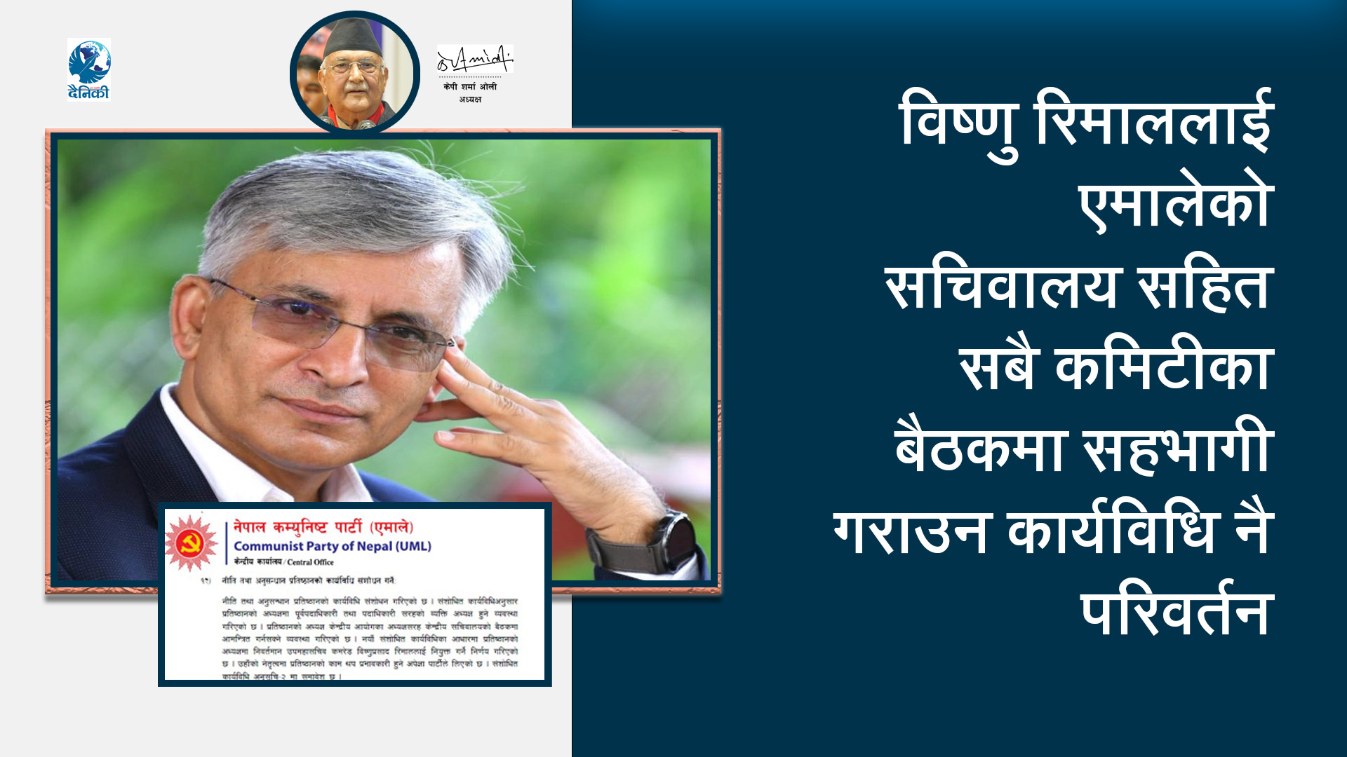 एमाले सचिवालयमा विष्णु रिमाललाई चोरबाटोबाट ढोका खुल्यो