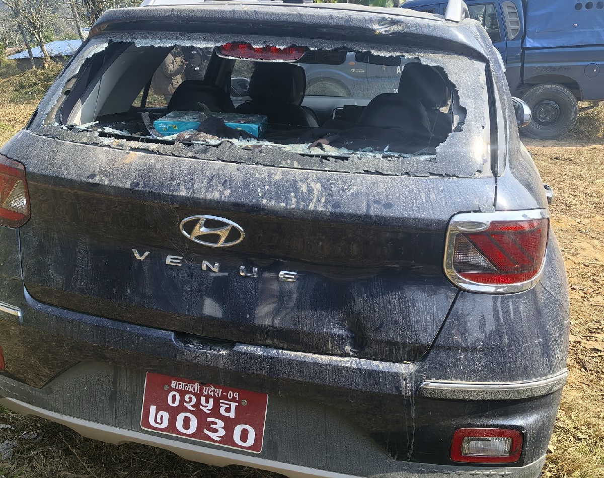 रास्वपा नेता चढेको गाडी तोडफोड