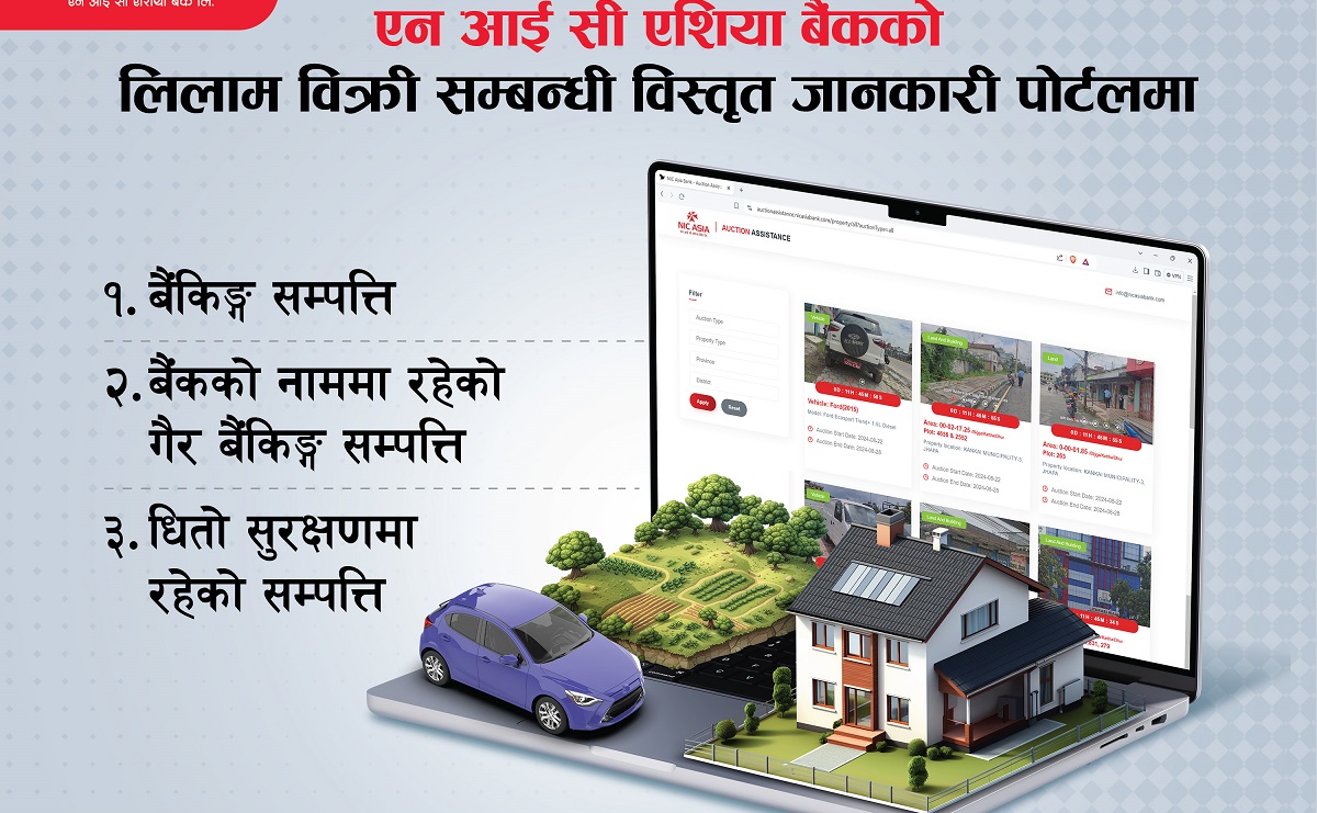 एनआईसी एशिया बैंकले सार्वजनिक गर्याे सम्पत्ति लिलाम बिक्री सम्बन्धी जानकारी पोर्टल