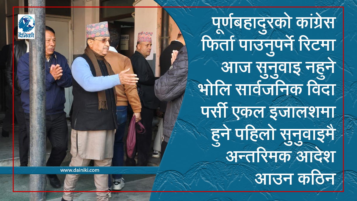 पूर्णबहादुरको कांग्रेस फिर्ता पाउनुपर्ने रिटमा आज सुनुवाइ नहुने