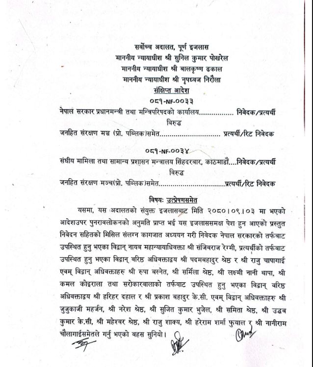 न्यायाधीशहरू सुनीलकुमार पोखरेल, बालकृष्ण ढकाल र नृपध्वज निरौलाको पूर्ण इजलासले संयुक्त इजलासबाट भएको फैसला कानुनी आधारमा उपयुक्त नरहेको ठहर गर्दै उल्ट्याएको हो।