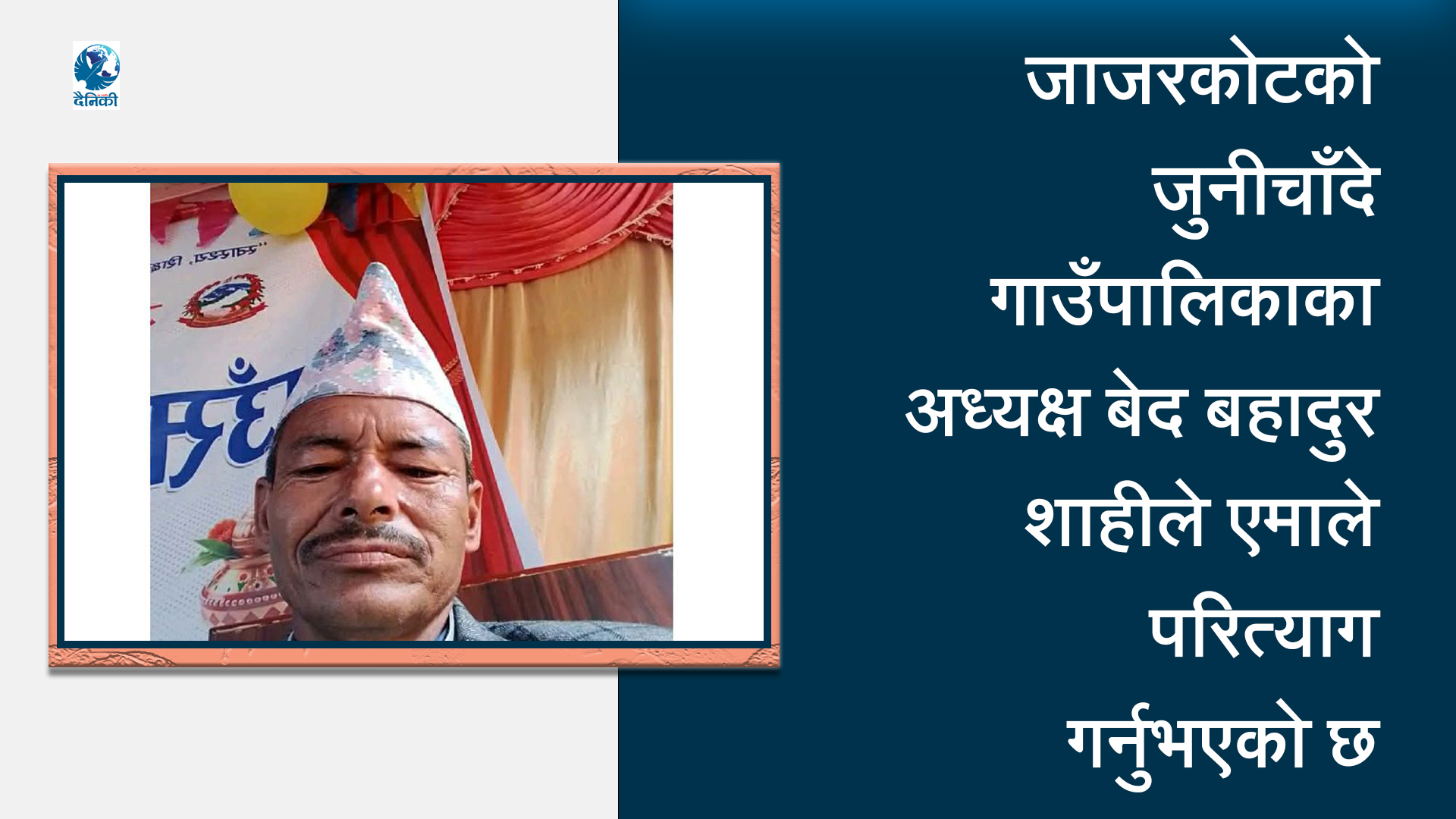 ४ माघ, काठमाडौँ । जाजरकोटको जुनीचाँदे गाउँपालिकाका अध्यक्ष बेद बहादुर शाहीले एमाले परित्याग गर्नुभएको छ । एमालेले टिकट वितरणमा गलत निर्णय गरेको भन्दै गाउँपालिका अध्यक्ष रहुनभएको शाहीले एमाले परित्यागको घोषणा गर्नुभएको हो ।