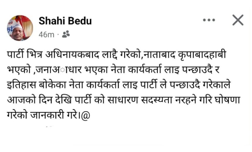 टिकट असन्तुष्टिः जुनीचाँदे गाउँपालिकाका अध्यक्ष शाहीले परित्याग गरे एमाले