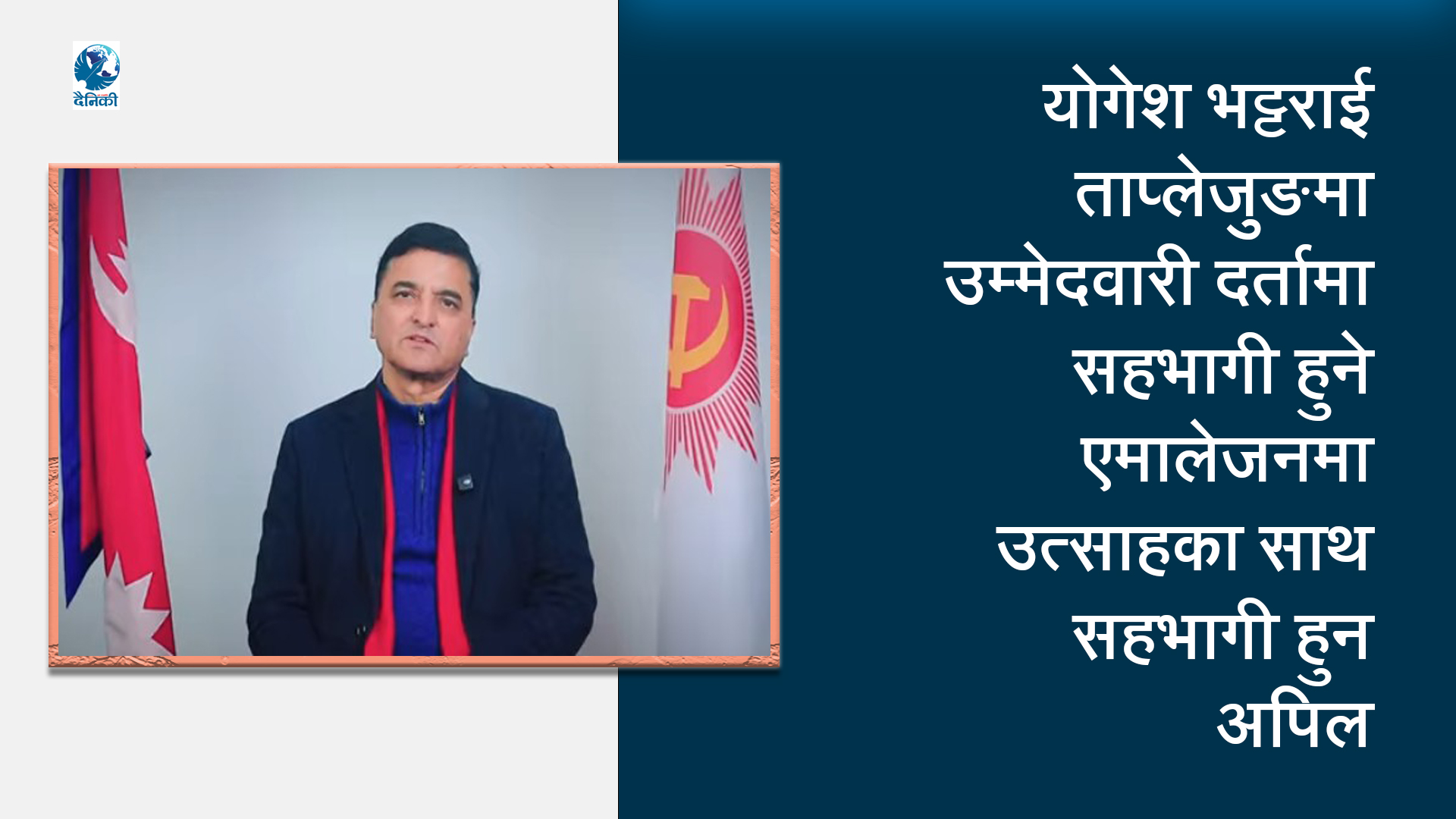 उहाँले आफू ताप्लेजुङमा उम्मेदवारी दर्तामा सहभागी हुने बताउँदै सबैलाई आफ्नो आफ्नो क्षेत्रको पायक पर्ने ठाउँमा उपस्थित हुन अनुरोध गर्नुभएको छ ।