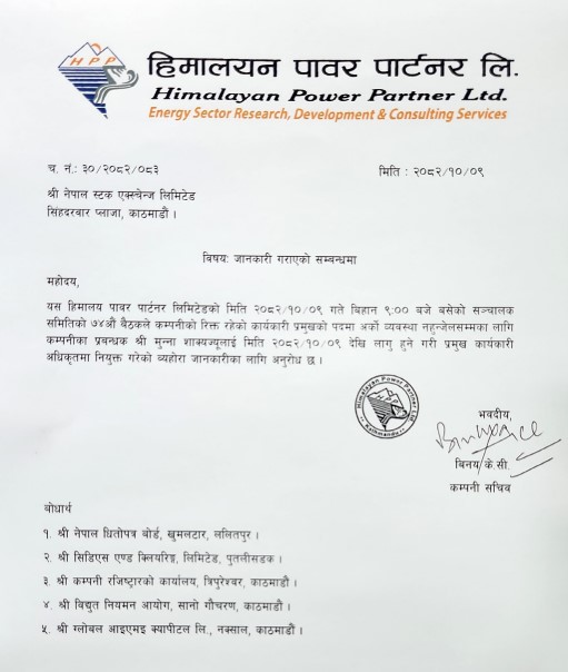 हिमालयन पावर पार्टनरको कामु सीईओमा मुन्ना शाक्य नियुक्त