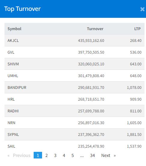 त्यस्तै, ग्रीन भेन्चर्सको ३९ करोड ७७ लाख रुपैयाँ, शिवम् सिमेन्टको ३२ करोड रुपैयाँ, युनाइटेड मोदी हाइड्रोपावरको ३० करोड १४ लाख रुपैयाँ र बन्दीपुर केवलकारको २९ करोड ६ लाख रुपैयाँको काराेबार भएकाे हाे ।