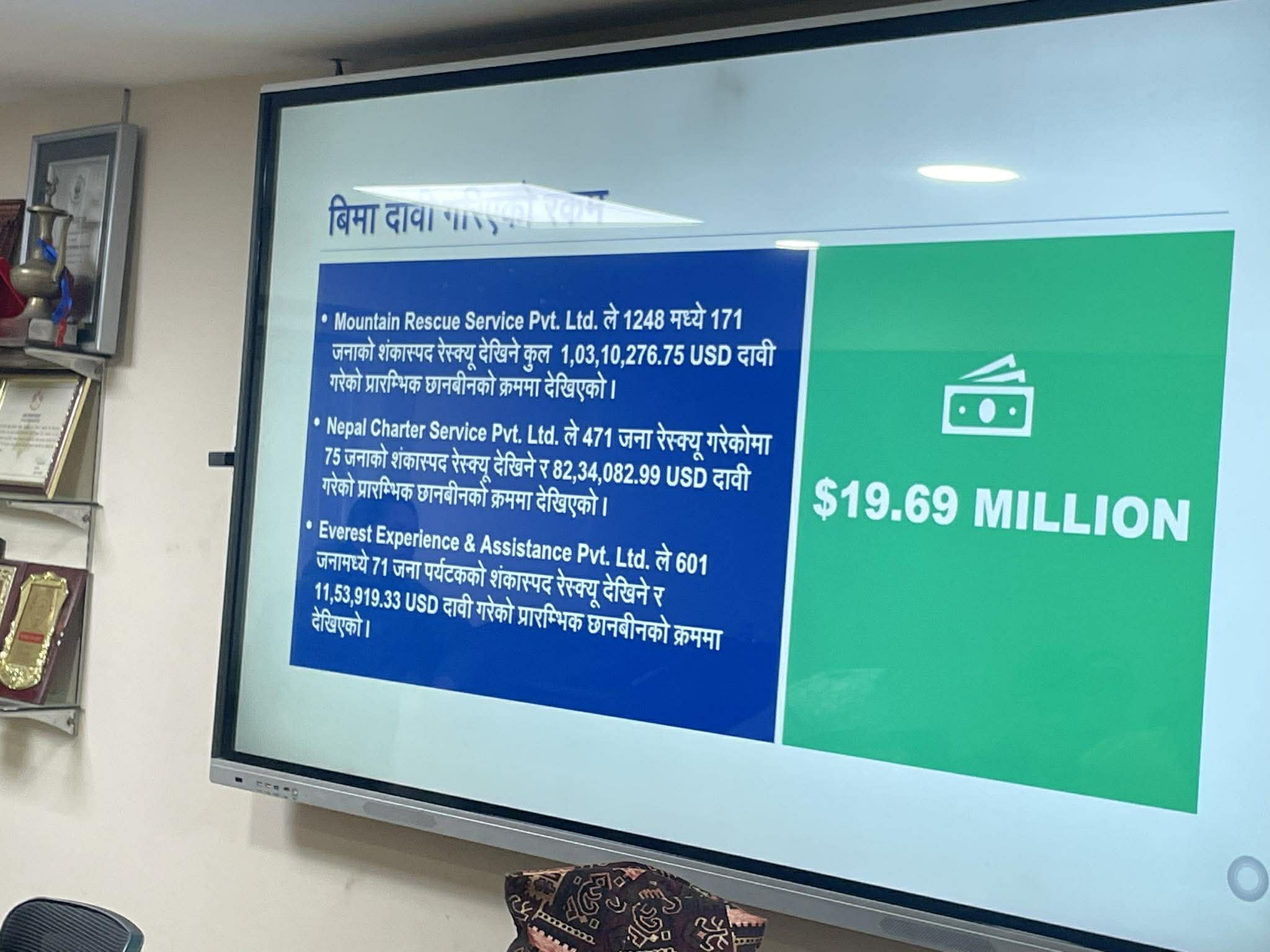 आइतबार पत्रकार सम्मेलन गर्दै सीआईबीले  माउन्टेन रेस्क्यू सर्भिस प्रालिले १२४८ जनामध्ये १७१ जनाको फेक रेस्क्यू गरेको जनाएकाे छ । योबाट उसले १० करोड बढी अमेरिकी डलर बीमा दाबी गरेको पाइएको सीआईबीले जनाएकाे छ ।