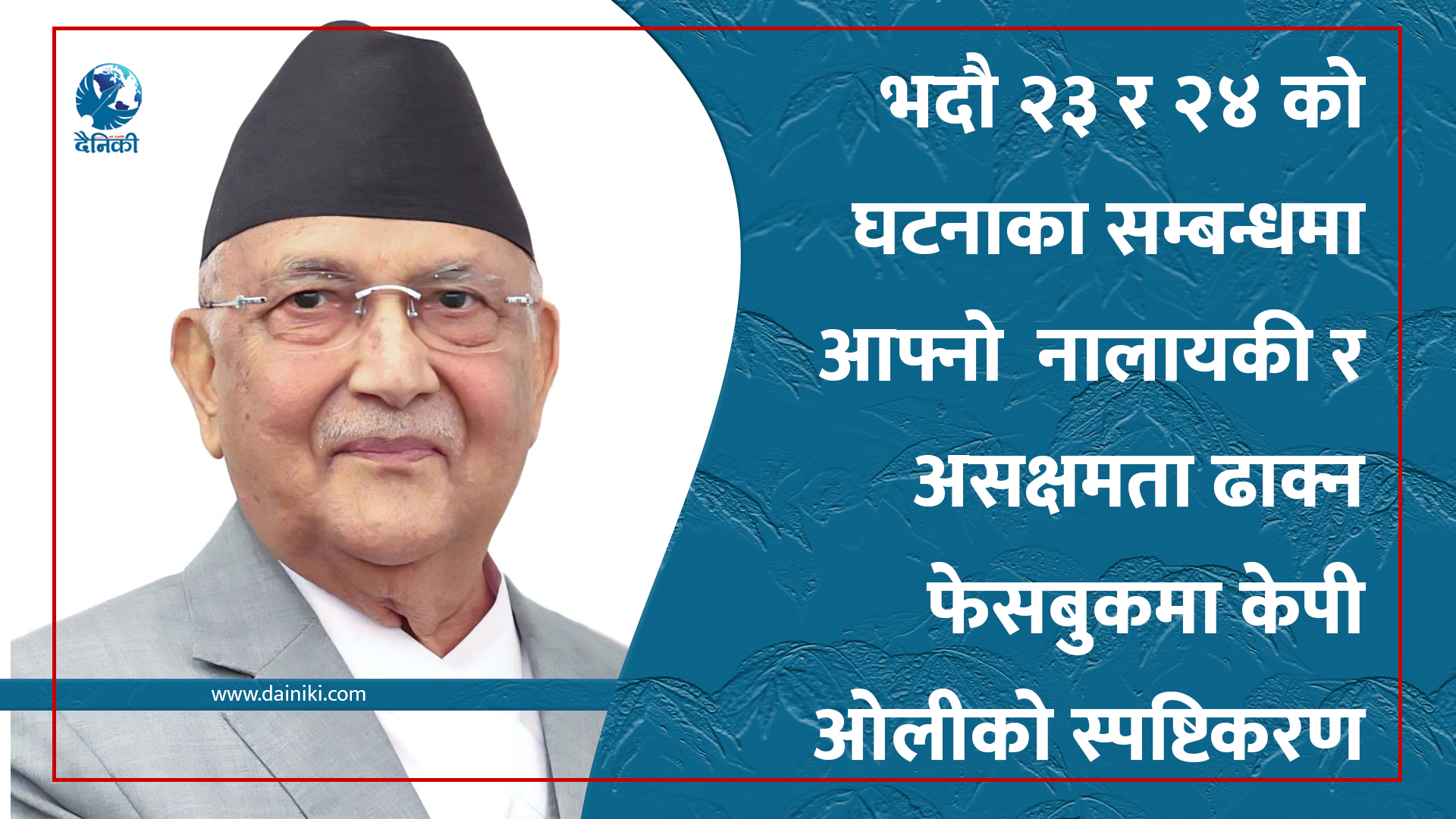 चुनावी अभियानका क्रममा एमालेका नेता कार्यकर्ताले देशैभरी भदौ २३ र २४ को घटनाका सम्बन्धमा प्रश्नहरू गरेपछि ओलीले फेसबुक मार्फत आफ्नो असक्षमता र नालायकी ढाकछोपको प्रयास गर्नुभएको हो । उहाँको भनाइ तल जस्ताको त्यस्तै प्रस्तुत गरिएको छ ।