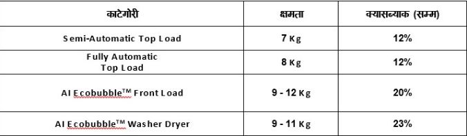 ग्राहकहरूले ७ के.जी देखि १२ के.जी सम्मका ए-आइ इकोबबल वाशर ड्रायर, फ्रन्ट-लोड, र सेमी-अटो मेटिक टप-लोड वाशिङ मेसिनहरूमा अधिकतम २३ प्रतिशतसम्मको क्यासब्याक प्राप्त गर्न सक्नुहुनेछन्। त्यसै गरी, सिंगल डोर, डबल डोर र साइड-बाई-साइड रेफ्रिजरेटरहरुमा १७ प्रतिशतसम्मको क्यासब्याक उपलब्ध छ।