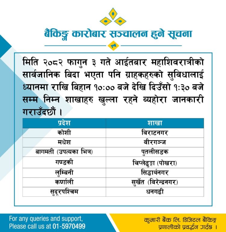 तर, आज सार्वजनिक बिदा भएपनि अधिकांश वाणिज्य बैंकहरू तथा विकास बैंकहरू सेवा दिइरहेका छन्।