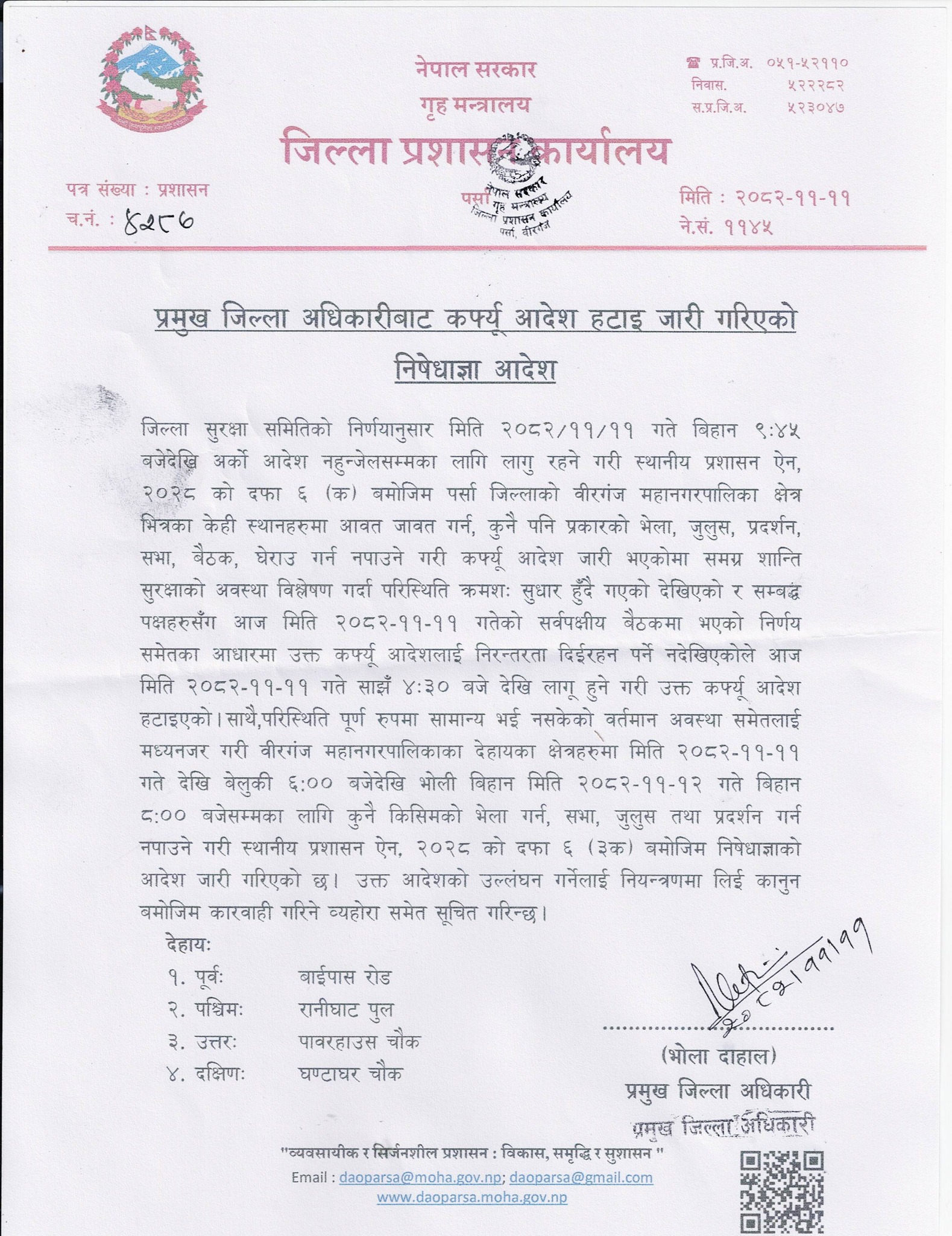 वीरगञ्जमा हट्यो कर्फ्यू, भोलि बिहानसम्म निषेधाज्ञा