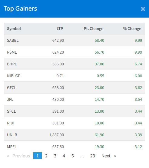 त्यस्तै, यस दिन बाराही हाइड्रोपावर पब्लिकको सेयरमूल्य ६.७४ प्रतिशत,एनआईबिएल ग्रोथ फण्डको ६ प्रतिशत र गुडविल फाइनान्सको ३.६३ सेयरमूल्य बढेको छ।