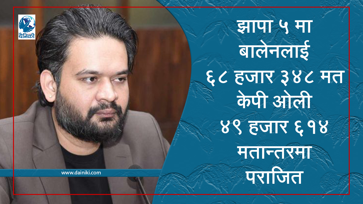 बालेनले ६८ हजार ३४८ मत पाउँदा ओलीले १८ हजार ७३४ मत मात्रै पाएका छन् । झापा ५ लाई देशैभर चासोका साथ हेरिएको थियो ।