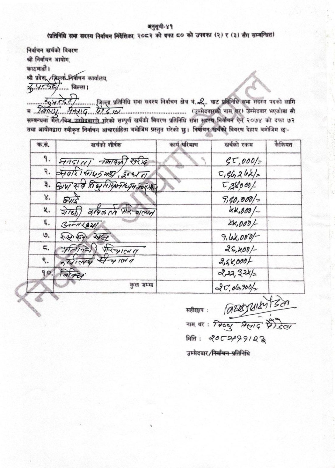 विष्णु पौडेलको चुनावी खर्च २८ लाख