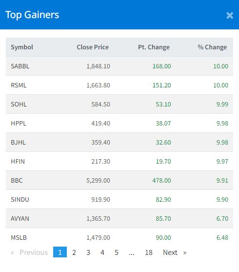 यस दिन सालपा विकास बैंक, रिलायन्स स्पिनिङ मिल्स, सोलु हाइड्रोपावर, हिमालयन पावर पार्टनर, भुजुङ हाइड्रोपावर र होटल फोरेस्ट इन कम्पनीहरुको सेयर मूल्यमा सकारात्मक सर्किट लागेको हाे ।