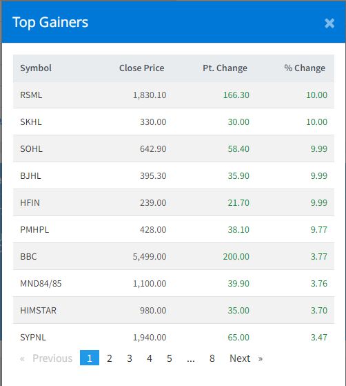 यस दिन रिलायन्स स्पिनिङ्ग मिल्स र सुपर खुदी हाइड्रोपावरको सेयरमूल्य १० प्रतिशतले वृद्धि भएको हो। त्यसैगरी सोलु हाइड्रोपावर, भुजुङ्ग हाइड्रोपावर र होटल फरेष्ट इनको सेयरमूल्य ९.९९ प्रतिशतले वृद्धि भएको छ ।