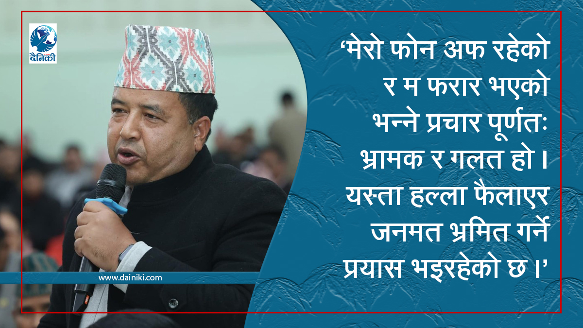 मलाई गिरफ्तारी गरी हाम्रो अध्यक्ष केपी शर्मा ओली विरुद्ध भइरहेको प्रतिशोधात्मक गिरफ्तारीको विरोधमा उठेको आन्दोलनलाई कमजोर पार्ने षड्यन्त्र भइरहेको छ । तीन वर्षअघि नै एउटा फेक व्यक्तिलाई अगाडि सारेर मेरो विरुद्ध झुट्टा जाहेरी दर्ता गराइएको थियो। उक्त जाहेरी प्रहरी अनुसन्धानबाट नै फर्जी प्रमाणित भइसकेको छ, र सोही विषयमा उच्च अदालत पाटन मा दायर गरिएको रिट समेत अदालतले खारेज गरिसकेको छ। सोही बिषयमा पुनः पूरक जाहेरी दर्ता गरी मुद्दा अदालतमा विचाराधीन रहेको छ्। यस्तो अवस्थामा फेरि उही व्यक्तिलाई प्रयोग गरेर तेस्रो पटक नक्कली जाहेरी दिन लगाई मलाई पक्राउ गर्ने योजना बनाएर मिडिया ट्रायल गरिँदैछ। यो कार्य बालेन शाह नेतृत्वको निरंकुश र अधिनायकवादी शैलीको सरकार तथा गृहमन्त्री सुदन गुरुङ द्वारा सञ्चालित कुकर्म हो। यस्ता कार्यहरूको प्रतिफल उनीहरूले अवश्य भोग्नुपर्नेछ। मेरो फोन अफ रहेको र म फरार भएको भन्ने प्रचार पूर्णतः भ्रामक र गलत हो। यस्ता हल्ला फैलाएर जनमत भ्रमित गर्ने प्रयास भइरहेको छ। यस्ता कुकर्महरूको परिणाम अन्ततः सम्बन्धित पक्षका लागि नै कठिन सावित हुनेछ।