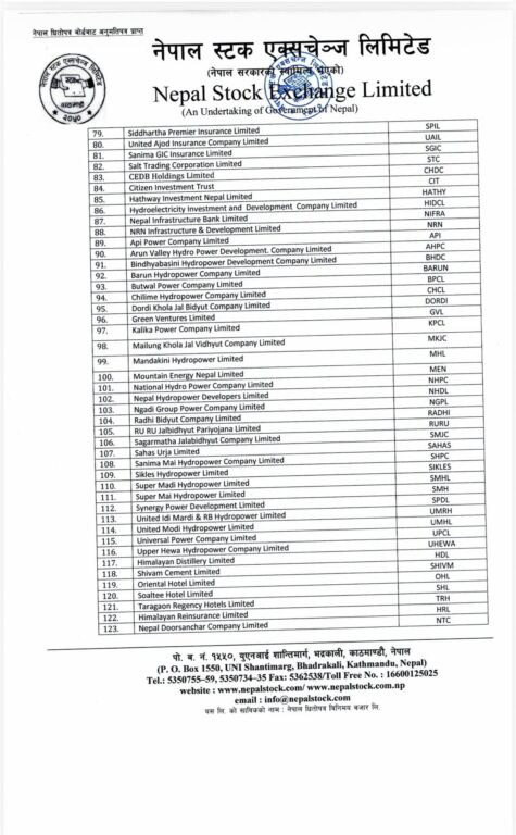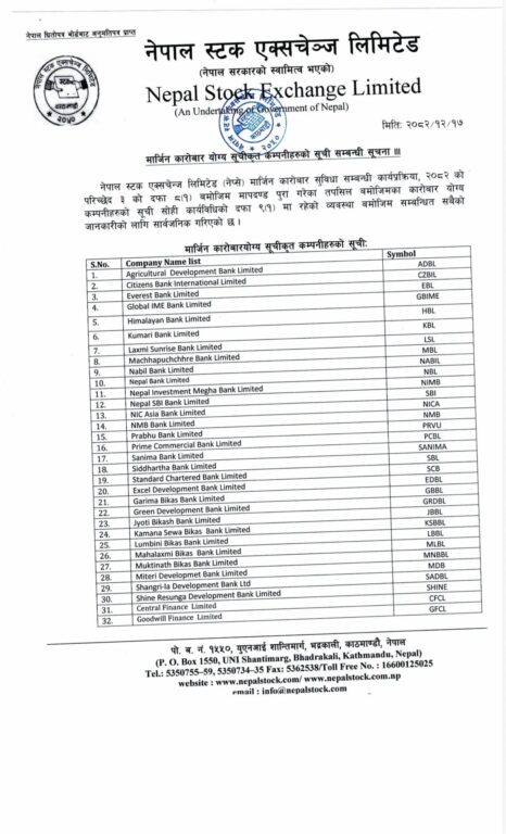 मार्जिन कारोबारका लागि १२३ कम्पनी योग्य, कुन–कुन परे ? (सूचीसहित)
