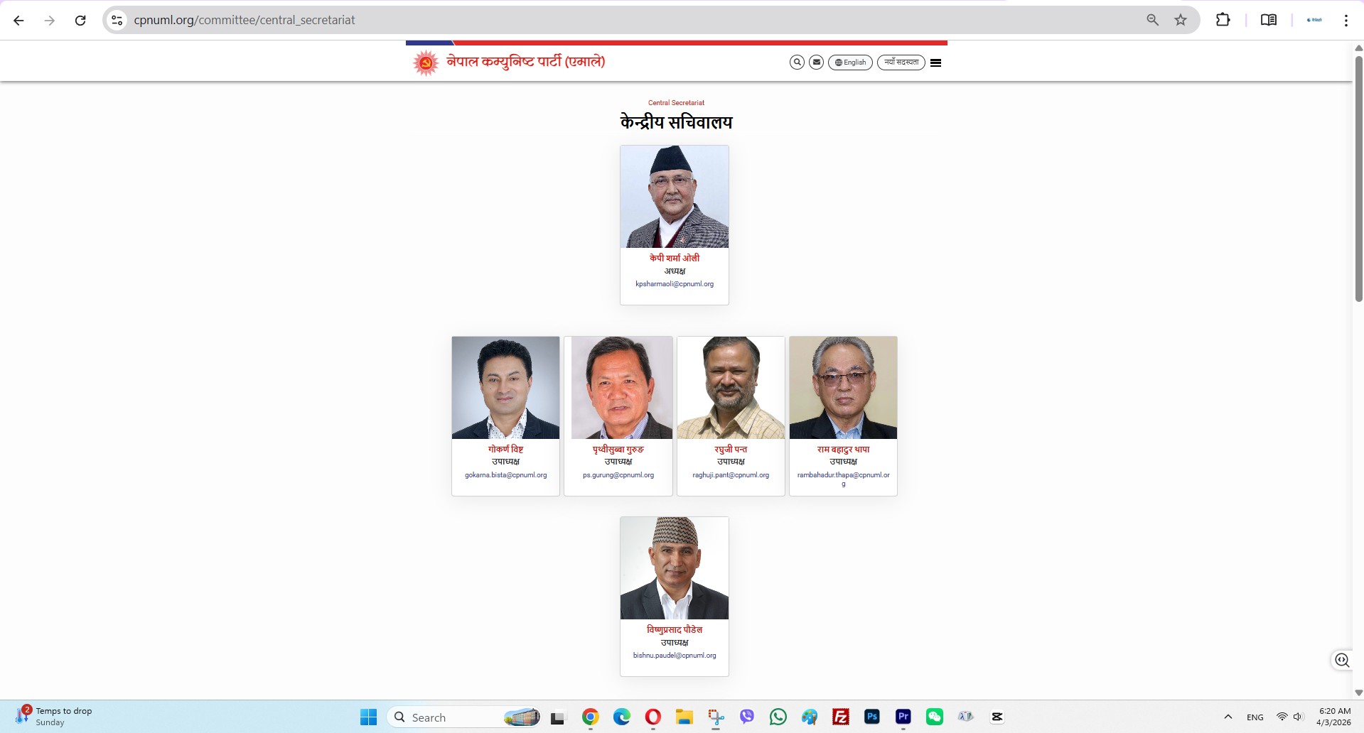 हाइटेक पार्टी दाबी गर्ने एमालेको वेबसाइटमा बादलको हैसियत अझै वृद्धि भएन
