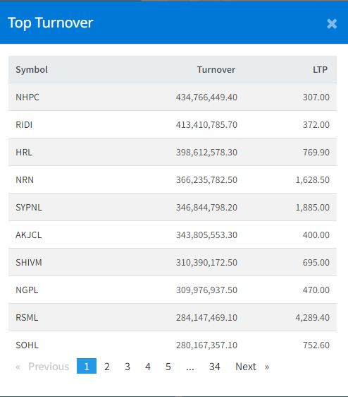 आज नेशनल हाइड्रोपावर कम्पनीकाे सर्वाधिक काराेबार भएकाे छ । यस दिन कम्पनीकाे ४३ करोड ४७ लाख ६६ हजार रुपैयाँबराबरको सेयर किनबेच भएको छ। त्यस्तै, यस दिन रिडी पावर कम्पनीको ४१ करोड रुपैयाँ र हिमालयन रि इन्स्योरेन्सको करिब ४० करोड रुपैयाँको सेयर खरिदबिक्री भएको छ।