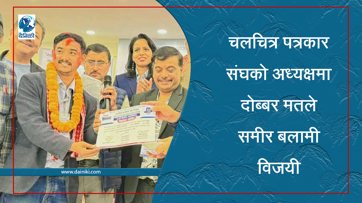६ वैशाख, काठमाडाैँ । चलचित्र पत्रकार संघ नेपालमा पुनः समिर बलामी नेतृत्वको टिम विजयी भएको छ । शनिबार भएको निर्वाचनमा अध्यक्षमा समिर बलामी दोब्बर मतान्तरमा विजयी हुनुभयो । उहाँले कुल खसेको १४० मतमा सर्वाधिक ९५ मत प्राप्त गर्नुभयो । उहाँको प्रतिस्पर्धी जीवन पराजुलीले ४२ मत प्राप्त गर्नुभयो । बलामी यसअघि अध्यक्ष नै हुनुहुन्थ्यो भने पराजुली पूर्व उपाध्यक्ष हुनुहुन्छ । बलामी फिल्मीफण्डाको सञ्चालकसहित सम्पादक हुनुहुन्छ भने पराजुली ठूलोपर्दाको सञ्चालकसहित सम्पादक हुनुहुन्छ ।