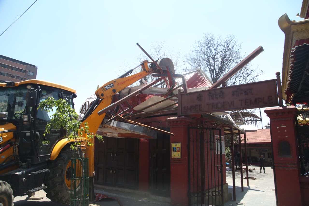 काठमाडौंको त्रिदेवी मन्दिरको जग्गा मिचेर बनाइएको संरचनामा महानगरले चलायो डोजर