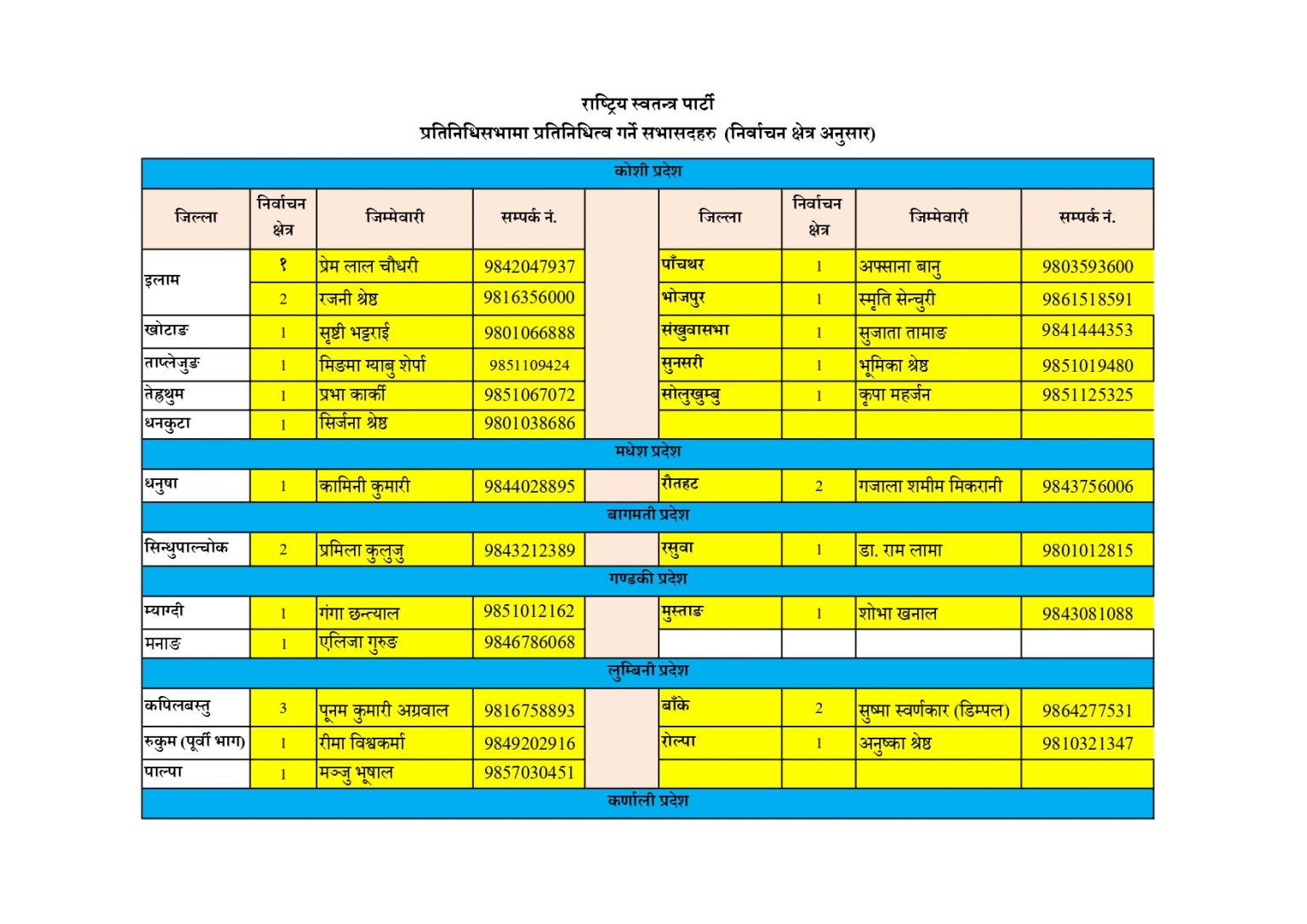 प्रत्यक्ष चुनाव नजितेका ठाउँमा रास्वपाले समानुपातिक सांसदलाई तोक्यो जिम्मेवारी