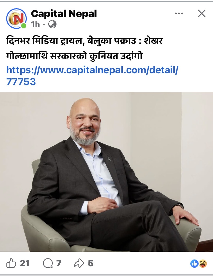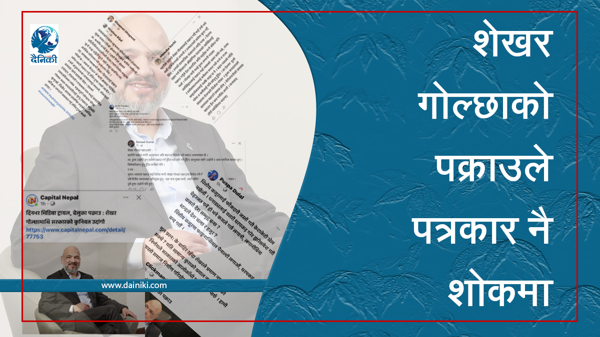यस्तै क्यापिटल नेपालले गोल्छामाथि सरकारको कुनियत उदंगो भएको भन्दै समाचारकै माध्यमबाट दुःख प्रकट गरेको छ । उसले ‘दिनभर मिडिया ट्रायल, बेलुका पक्राउः शेखर गोल्छामाथि सरकारको कुनियत उदंगो’ शीर्षकमा आफ्नो दुःख बाँडेको छ ।