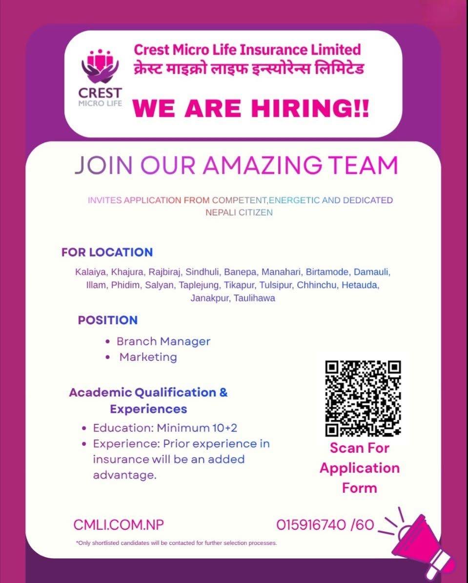 जागिरकाे खाेजीमा हुनुहुन्छ ? क्रेस्ट माइक्रो लाइफले माग्यो कर्मचारी
