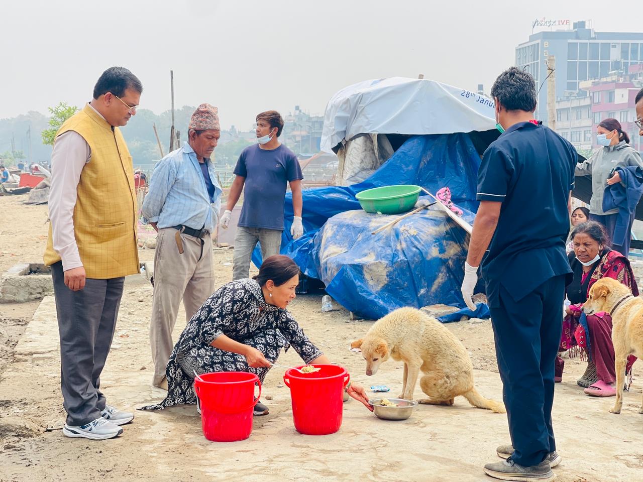 १३ वैशाख, काठमाडौं । सुकुम्बासी बस्तीमा रहेका घरपालुवा जनावरहरूको हेरचाह गरिएको छ। प्रधानमन्त्री तथा मन्त्रिपरिषद कार्यालयका अनुसार घरपालुवा कुकुर, गाईलगायतलाई हेरचाह गर्ने काम भइरहेको छ।