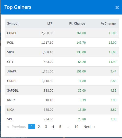 आज ३५१ कम्पनीको १ करोड ८ लाख ९९ हजार कित्ता सेयर किनबेच हुँदा ४ अर्ब ७३ करोड रुपैयाँको कारोबार भएको हो । सोमबार ४ कम्पनीको सेयर मूल्यमा सकारात्मक सर्किट लागेको छ । यस दिन कर्पोरेट डेभलपमेन्ट बैंक, पाल्पा सिमेन्ट इण्डष्ट्रीज, शिखर पावर डेभलपमेन्ट र सिटि होटलको सेयर मूल्यमा सकारात्मक सर्किट लागेको हाे ।