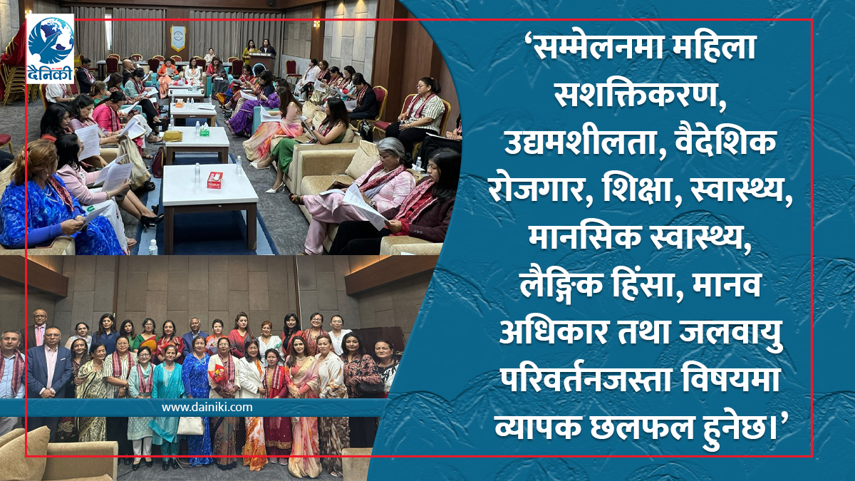 राष्ट्रिय मानव अघिकार आयोगकी सदस्य लिली थापा, कोशी प्रदेशको भौतिक पूर्वाधार विकास मन्त्रालयकी राज्यमन्त्री माननीय राज्यमन्त्री शोभा चेम्जोंग,महिला आयोगकि अध्यक्ष कमला पराजुली संस्थापक अध्यक्ष डा उपेन्द्र महतो र पूर्व अध्यक्ष रबिना थापाको विशेष आतिथ्यतामा आज सम्मेलनको तयारीस्वरूप विभिन्न सरोकारवाला निकायसँग सुझाव संकलन गरिएको छ। सम्मेलन आगामी जनवरीमा काठमाडौंमा आयोजना हुने तयारी छ, जसको उद्देश्य विश्वभर रहेका नेपाली महिलाहरूलाई एउटै मञ्चमा ल्याई उनीहरूको अनुभव, चुनौती र सफलताका कथाहरू आदान–प्रदान गर्नु रहेको छ।
