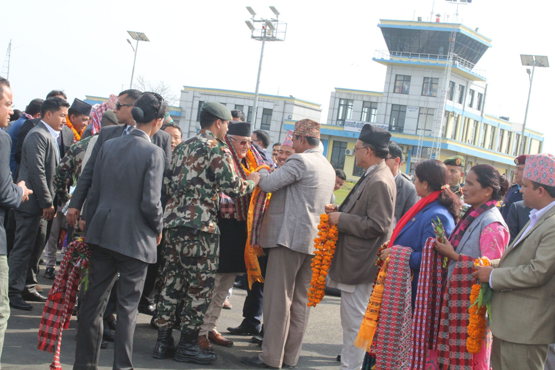 ७ फागुन, कैलाली । नेपाल कम्युनिष्ट पार्टी (नेकपा) का अध्यक्षद्धय केपी शर्मा ओली र पुष्पकमल दाहाल ‘प्रचण्ड’ सहित शीर्ष नेताहरु मंगलबार धनगढीमा आएका छन । बुधबार धनगढीमा हुने पार्टीको विशेष कार्यकर्ता भेलामा सहभागिताका लागि प्रधानमन्त्री ओली, अध्यक्ष दाहाल, वरिष्ठ नेता माधवकुमार नेपाल, महासचिव बिष्णु पौडेलसहितका नेताहरु धनगढी पुगेका छन । भेलालाई नेकपाका अध्यक्षसमेत रहेका प्रधानमन्त्री केपी शर्मा ओलीसहित शीर्ष नेताले सम्बोधन गर्नुहुने कार्यक्रम रहेको छ ।