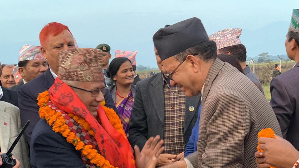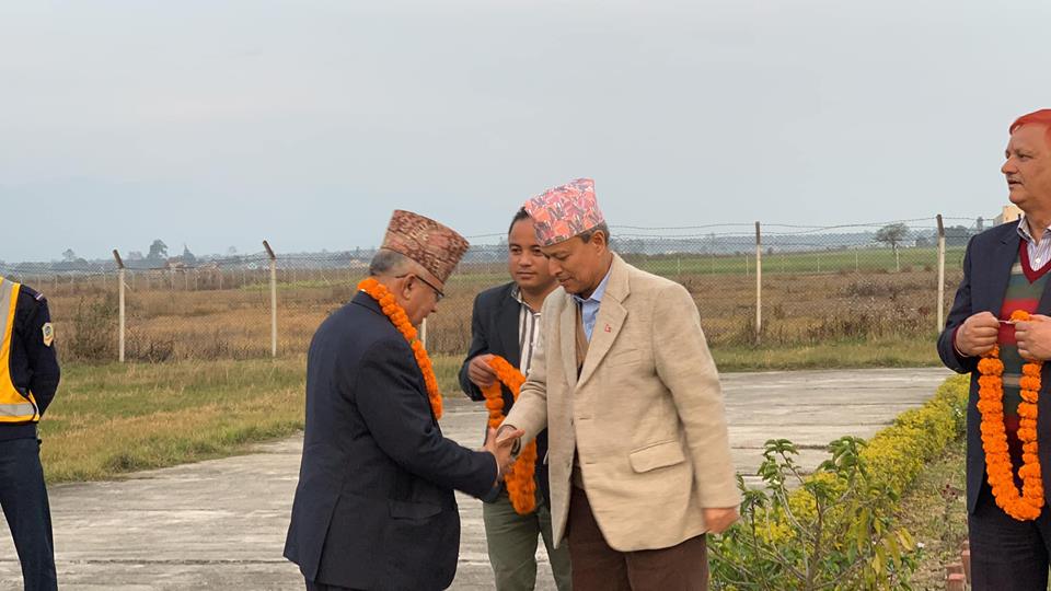 ७ फागुन, कैलाली । नेपाल कम्युनिष्ट पार्टी (नेकपा) का अध्यक्षद्धय केपी शर्मा ओली र पुष्पकमल दाहाल ‘प्रचण्ड’ सहित शीर्ष नेताहरु मंगलबार धनगढीमा आएका छन । बुधबार धनगढीमा हुने पार्टीको विशेष कार्यकर्ता भेलामा सहभागिताका लागि प्रधानमन्त्री ओली, अध्यक्ष दाहाल, वरिष्ठ नेता माधवकुमार नेपाल, महासचिव बिष्णु पौडेलसहितका नेताहरु धनगढी पुगेका छन । भेलालाई नेकपाका अध्यक्षसमेत रहेका प्रधानमन्त्री केपी शर्मा ओलीसहित शीर्ष नेताले सम्बोधन गर्नुहुने कार्यक्रम रहेको छ ।