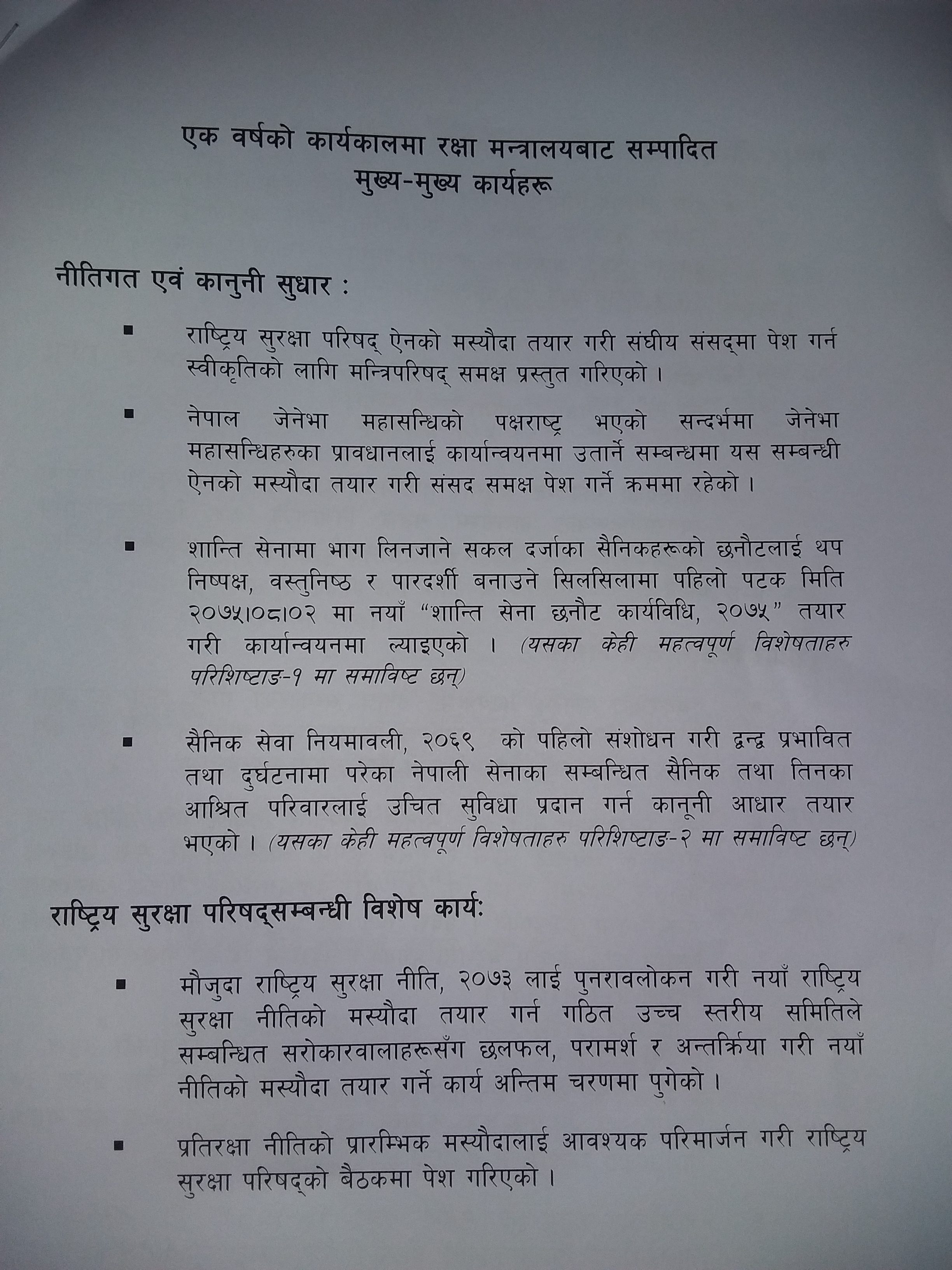 रक्षा मन्त्रालयमा उपप्रधानमन्त्री पाेखरेलकाे एक वर्ष: नीतिगत सुधारमा उल्लेख्य उपलब्धि