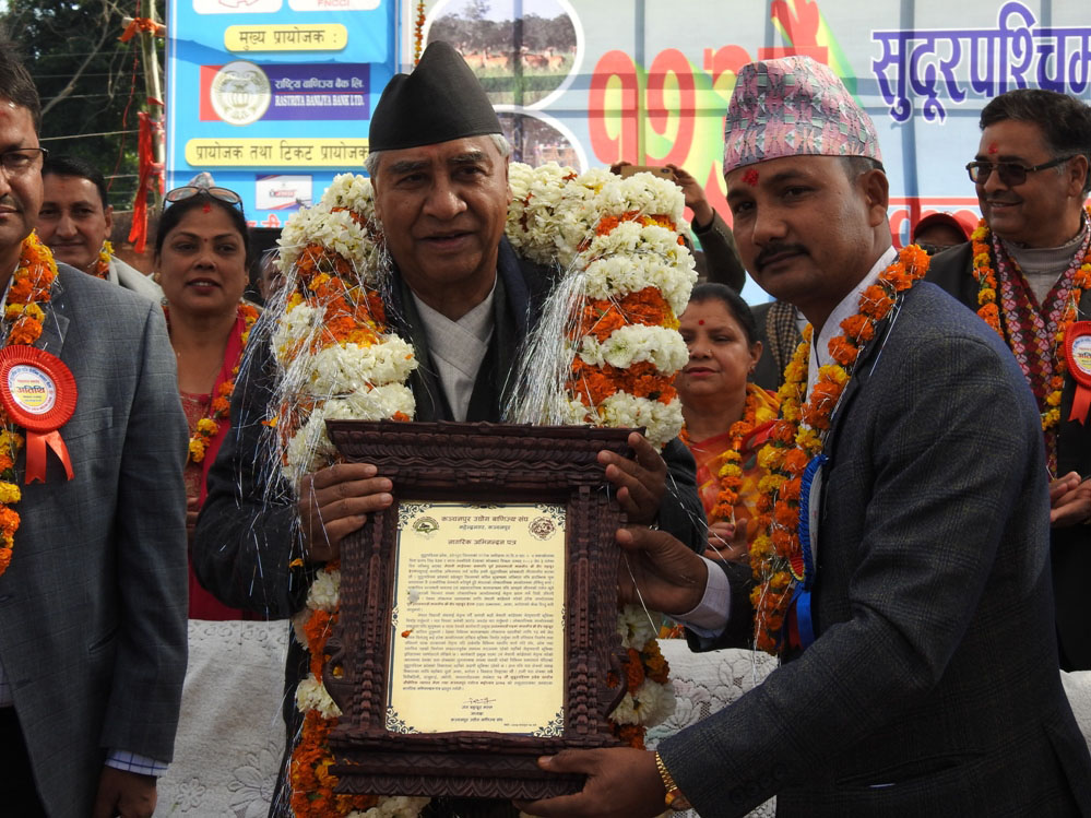वाणिज्य सङ्घले पूर्वप्रधानमन्त्री देउवालाई सोही अवसरमा १२ किलोको मालाले अभिनन्दनसमेत गरेको थियो । यही फागुन २६ गतेसम्म सञ्चालन हुने महोत्सवमा १७० कक्ष छन् । महोत्सवमा दैनिक उपभोग्य सामग्री, गारमेन्टका सामग्री, इलेक्टोनिक्स, अटोमोबाइल, कृषिका आधुनिक औजार सामग्री, बाल उद्यान, दुग्धजन्य वस्तुलगायत राखिएका छन् ।