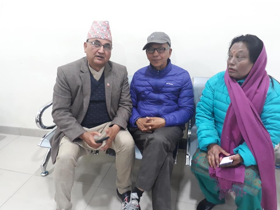 १८ फागुन, काठमाडाैँ । उपप्रधानमन्त्री एवं रक्षामन्त्री इश्वर पोखरेलले नेकपाका नेता एवं पूर्व उपप्रधान तथा अर्थमन्त्री भरतमोहन अधिकारीका नाममा श्रद्धाञ्जली दिन हतार नगर्न आग्रह गरेको छन । अधिकारीको उपचारको अवस्थाका बारेमा अस्पतालमै बसेर जानकारी लिइरहेका उपप्रधानमन्त्री पोखरेलले फेसबुक मार्फत श्रद्धाञ्जली दिन हतार नगर्न अनुरोध गरेका हुन ।