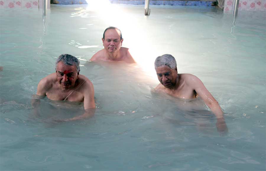 हेलिकप्टरमार्फत बेनी–४ मा रहेको प्राकृतिक चिकित्सालयको रुपमा परिचित सिङ्गा तातोपानी कुण्डमा पुगेका सभापति देउवासहितको टोलीले तातोपानी कुण्डको अवलोकन भम्रण तथा कुण्डको अवलोकनसँगै स्नानसमेत गरेका थिए । देउवा र पाैडेल एउटै पोखरीमा डुबुल्की मारिरहेको तस्बीर अहिले सामाजिक सञ्जालमा सायाैँले सेयर गरेका छन । धेरैले देउवाको जनै खोइ ? भन्दै फोटो सेयर गरिरहेका छन ।