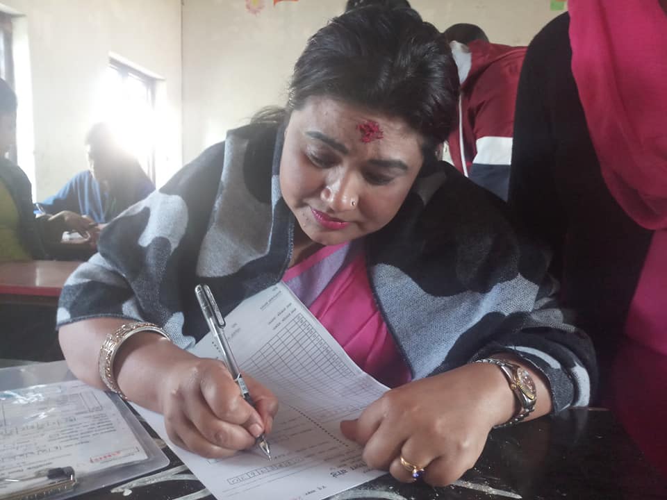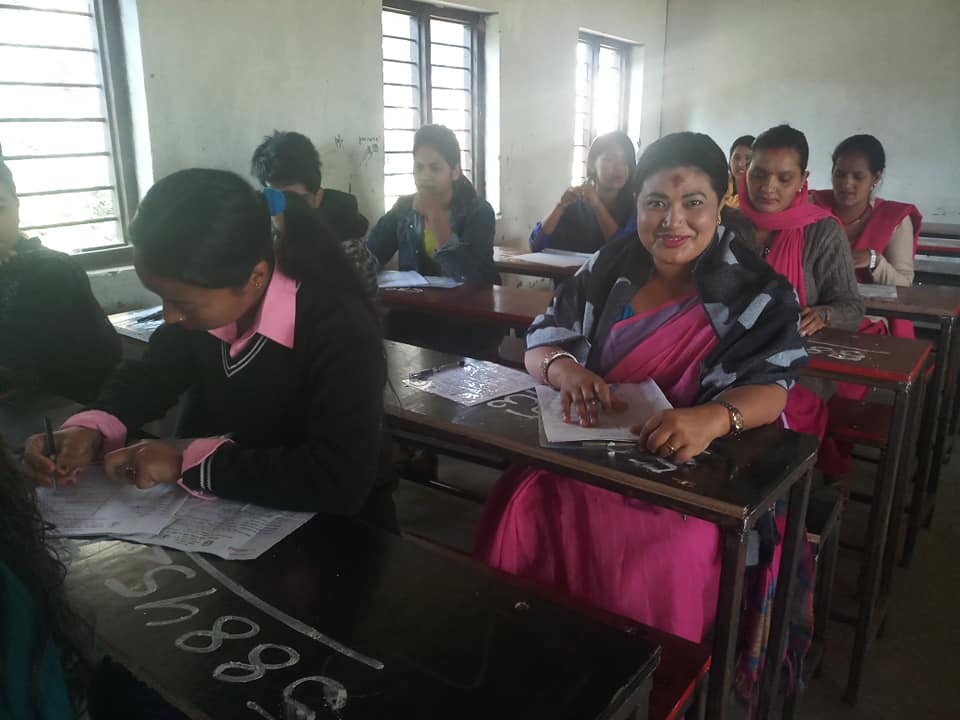 पाँच तस्बीरमा हेर्नुहोस् नेकपाकी सचेतक शान्ता चाैधरीको एसइइ परीक्षाको पहिलो दिन