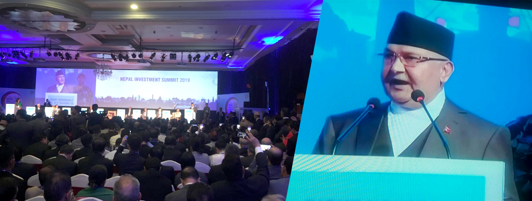 १५ चैत, काठमाडाैँ । प्रधानमन्त्री केपी शर्मा ओलीले ‘समृद्ध नेपाल : सुखी नेपाली’ अभियान सार्थक पार्न सम्मेलन महत्वपूर्ण रहने विश्वास व्यक्त गरेका छन । विदेशी लगानी भित्र्याउने महामेलाकाे रूपमा हेरिएकाे नेपाल इनभेस्टमेन्ट समिट २०१९ काे उद्घाटन गर्दै प्रधानमन्त्री ओलीले मुलुकमा राजनीतिक स्थायित्व कायम भएकाले लगानीकर्तालाइ ढुक्क भएर लगानी गर्न आग्रह गरे ।