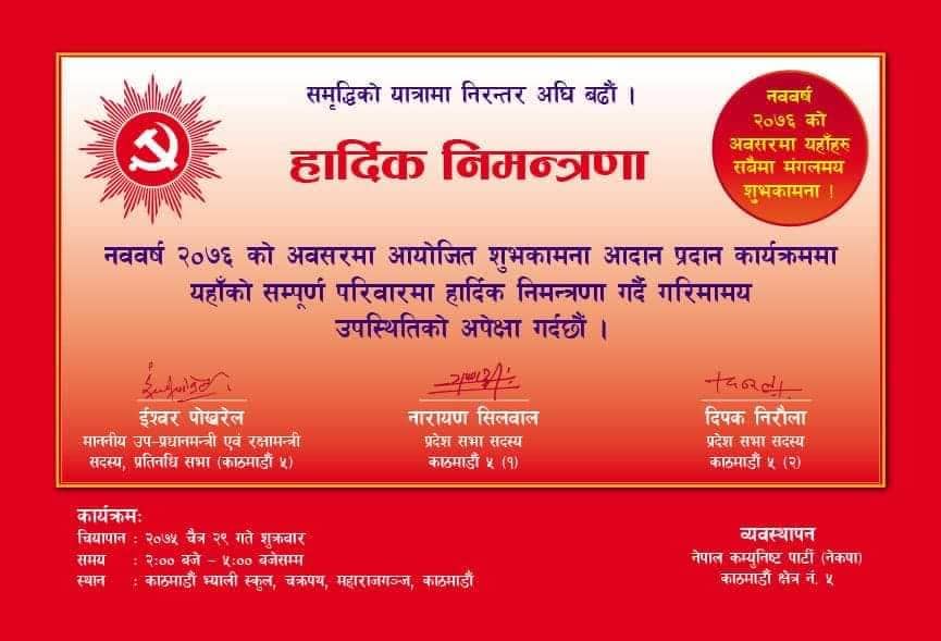 नयाँ वर्षको अवसरमा शुक्रबार नेकपाले चियापान गर्ने, १० हजारभन्दा बढीकाे उपस्थिति हुने अपेक्षा