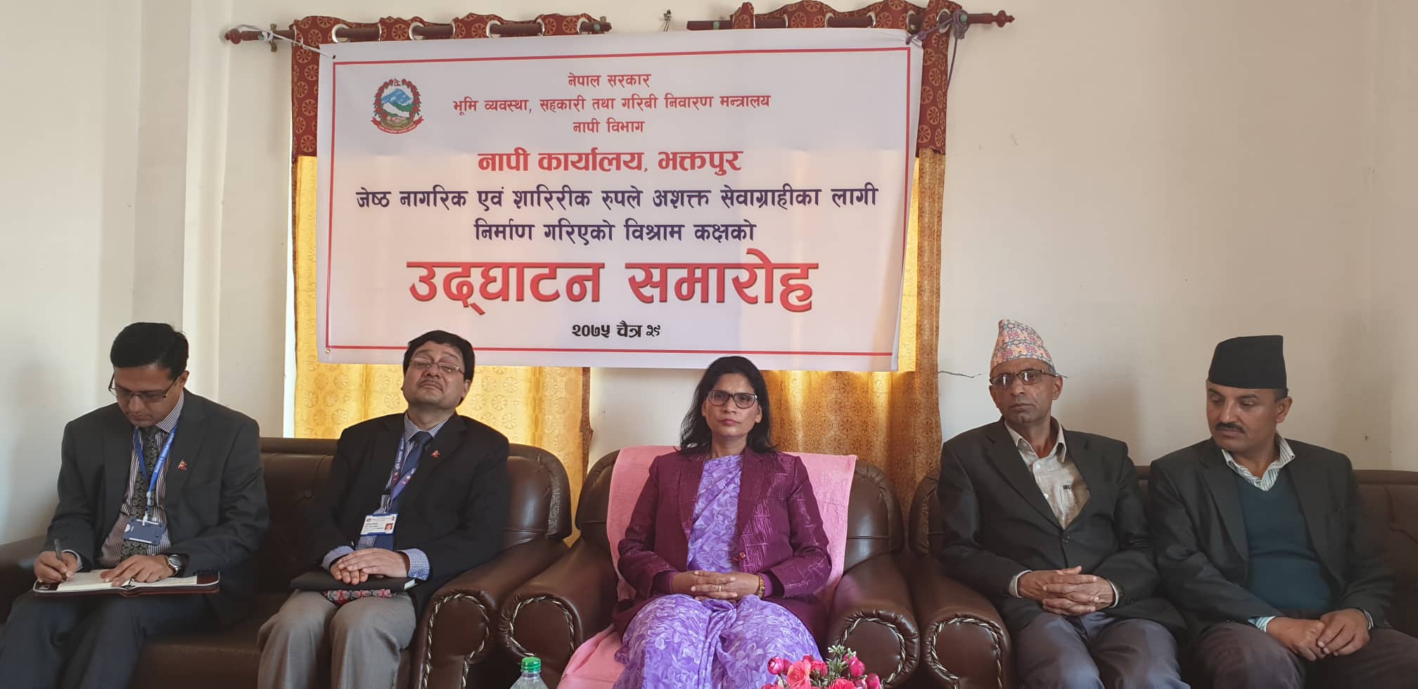 त्यस अवसरमा नापी कार्यालय भक्तपुरका प्रमुख ज्ञानेन्द्रकुमार विष्टले ७ महिनादेखि कार्यालयले आफ्नै भवनबाट सेवा दिइरहेको, अनाधिकृत व्यक्तिको प्रवेश रोक्न डोरलक सिस्टम अपनाइएको, डिजिटल रुपमा सेवा दिइएको, दोहोरो स्क्रिन डिस्प्लेमार्फत कम्प्युटर सेवा दिइएको, टोकन प्रणाली मार्फत सेवा दिइएको जानकारी दिनुभएको थियो । यसैगरी मालपोत कार्यालय भक्तपुरका प्रमुख ध्रुवप्रसाद कोइरालाले कार्यालयमा भइरहेको सेवा तथा समस्याका बारेमा मन्त्री अर्याललाई जानकारी गराउनुभएको थियो । कार्यक्रममा भक्तपुरका प्रमुख जिल्ला अधिकारी, जिल्ला समन्वय समिति भक्तपुरका संयोजक नवराज गेलालले सेवाग्राहीमैत्री भएर सेवा प्रवाह गर्न आग्रह गर्नुभएको थियो ।