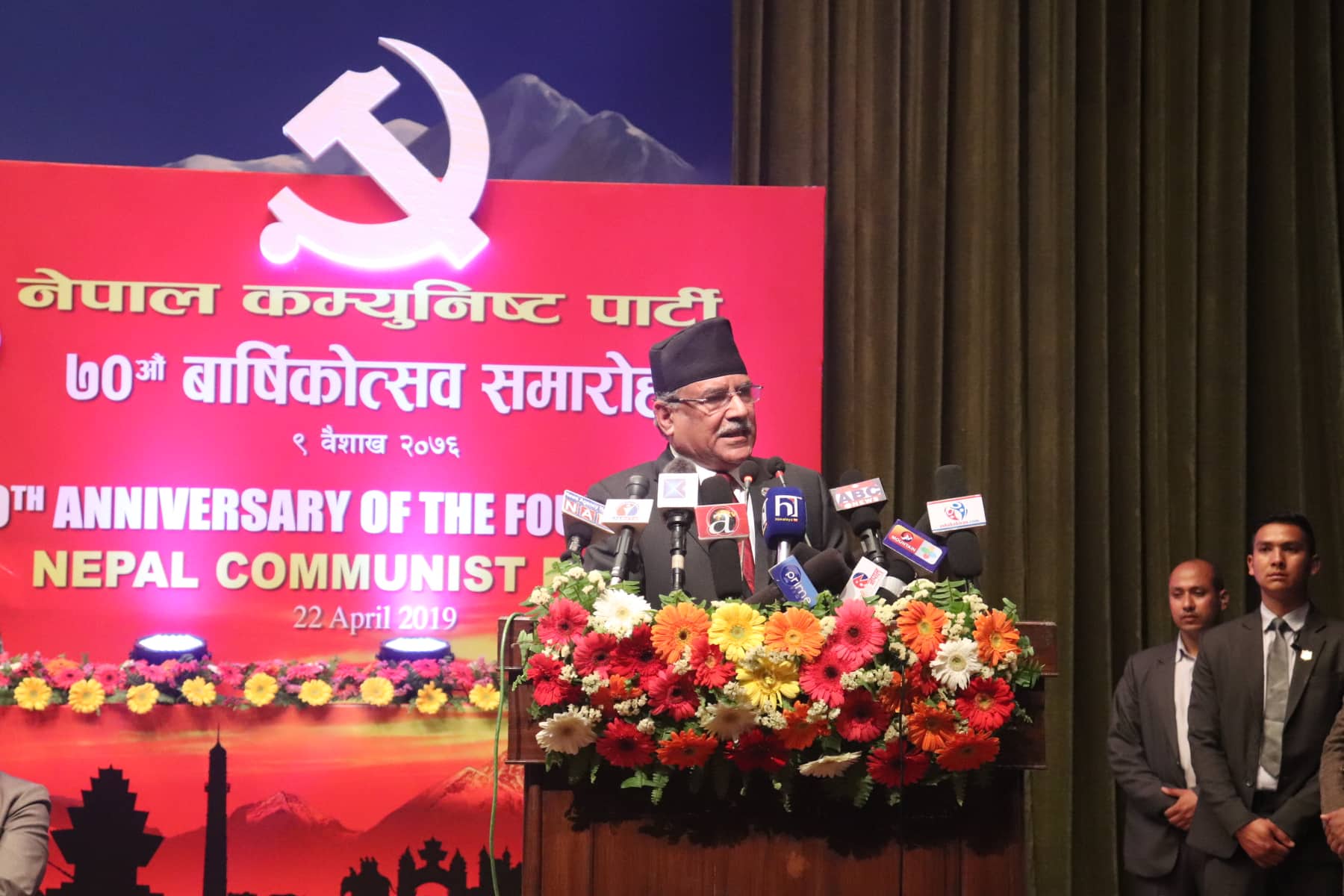 सोमबार नेकपा पार्टी स्थापनाको ७० औं वार्षिकोत्सवको अवसरमा आयोजित विशेष समारोहलाई राजधानीमा सम्बोधन गर्दै प्रचण्डले ८ महिनाभित्र ७७ जिल्ला र प्रवासका सबै कमिटीको सम्मेलन सकिने र एक वर्षभित्र महाधिवेशन गर्ने बताए ।