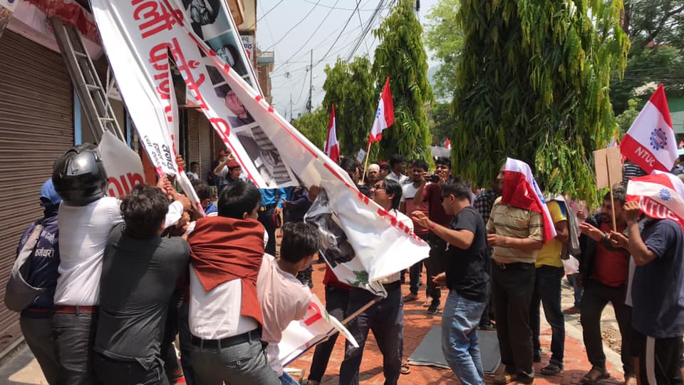 ट्रेड युनियन कांग्रेस तनहुँले पार्टी कार्यालयको बोर्ड च्यातेर मनायो श्रमिक दिवस ! (भिडियोसहित)