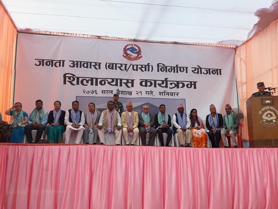 एकैसाथ बारा पर्साको १२ ठाउँमा सो आवासको आजै शिलान्यास भइरहेको छ । उहाँले प्रधानमन्त्री केपी शर्मा ओलीको उपस्थितिमा शिलान्यास कार्यक्रम हुने भनिए पनि विशेष कारणले प्रधानमन्त्री आउन नसक्नु भएको जानकारी दिनुभयो ।