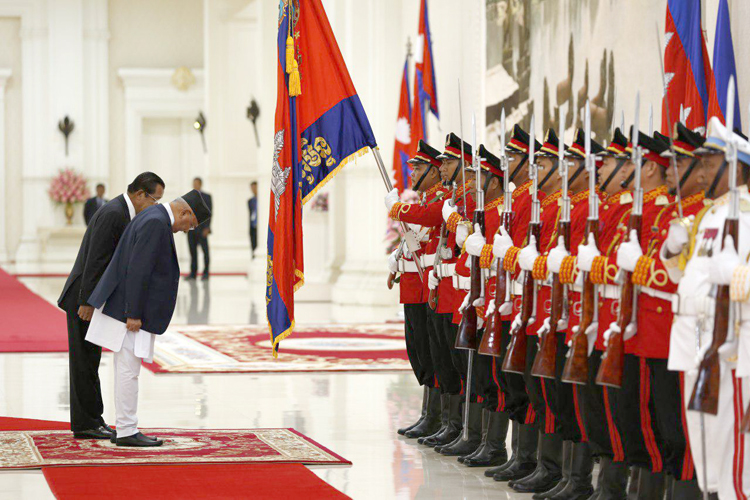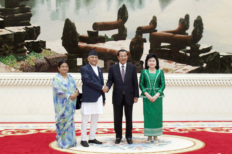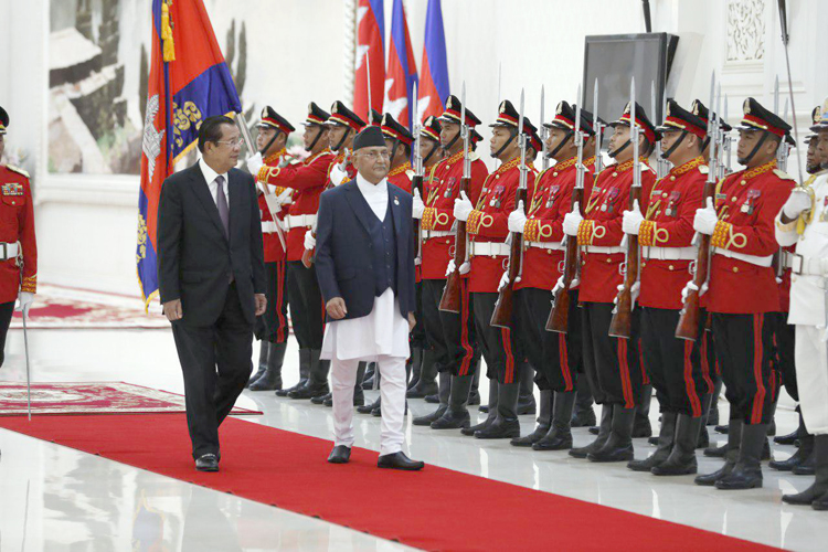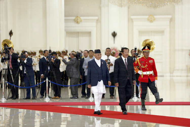 कम्बोडियामा प्रधानमन्त्री ओलीलाई नेपाली झण्डासहित यसरी गरियाे स्वागत (फाेटाेफिचर)