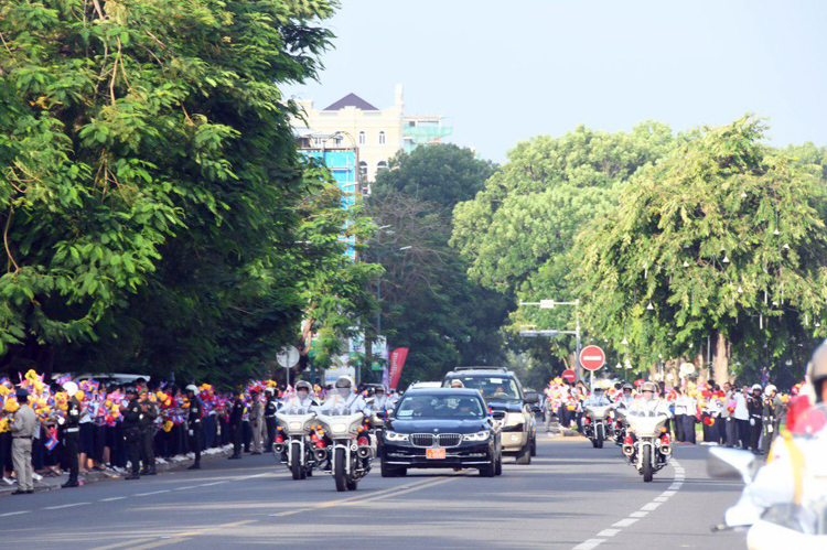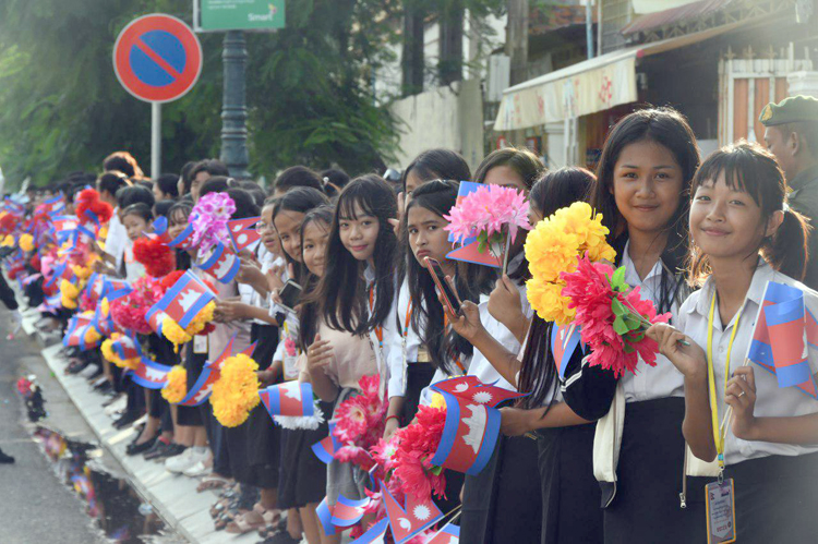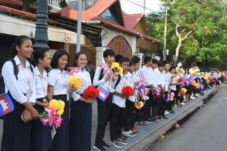 कम्बोडियाका प्रधानमन्त्री साम वेद्क आक्का मोह सेना पाडेयी टेको हुन सेनको मैत्रीपूर्ण निमन्त्रणामा नेपाली प्रतिनिधिमण्डलको नेतृत्व गर्दै त्यहा पुगेका प्रधानमन्त्री ओलीलाई त्यहाँका जनताले भब्य स्वागत गरेका छन् । सडकका दायाबाया उभिएर दुई देशका झण्डा बोकेर प्रधानमन्त्री ओलीलाई स्वागत गरेका हुन् ।