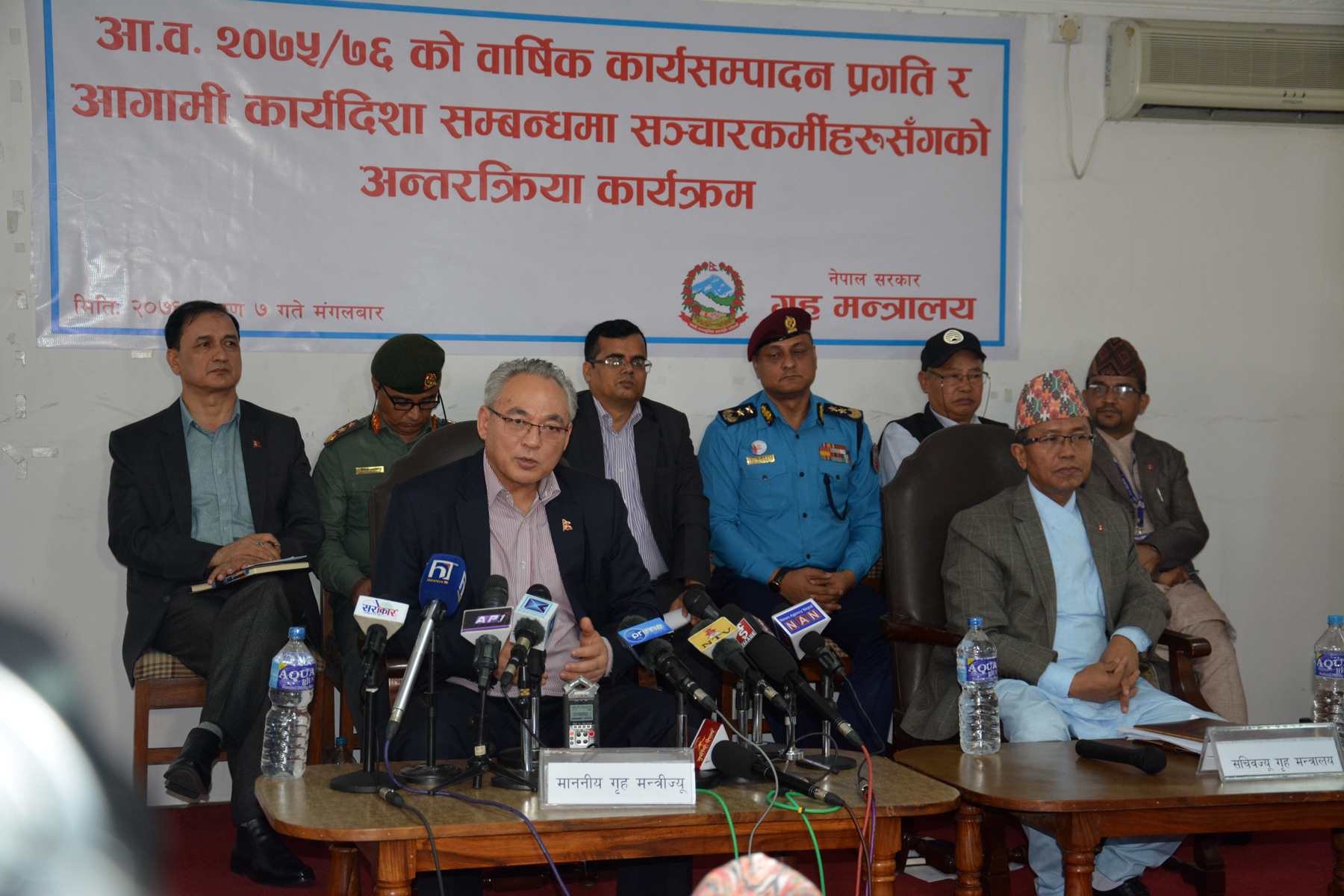 ७ साउन, काठमाडौँ । गृहमन्त्री रामबहादुर थापा ‘बादल’ले मुलुकमा शान्तिसुरक्षा कायम राख्न गृह प्रशासन सफल रहेको बताउनुभएको छ । आर्थिक वर्ष २०७५÷७६ को वार्षिक कार्यसम्पादन प्रगति र आगामी कार्यदिशाबारे आज आयोजित सञ्चारकर्मीसँगको अन्तरक्रियामा उहाँले सरकारले परिकल्पना गरेको ‘समृद्ध नेपाल, सुखी नेपाली’ निर्माणका लागि शान्तिसुरक्षा मजबुत बनाउनुपर्ने बताउनुभएको हो ।